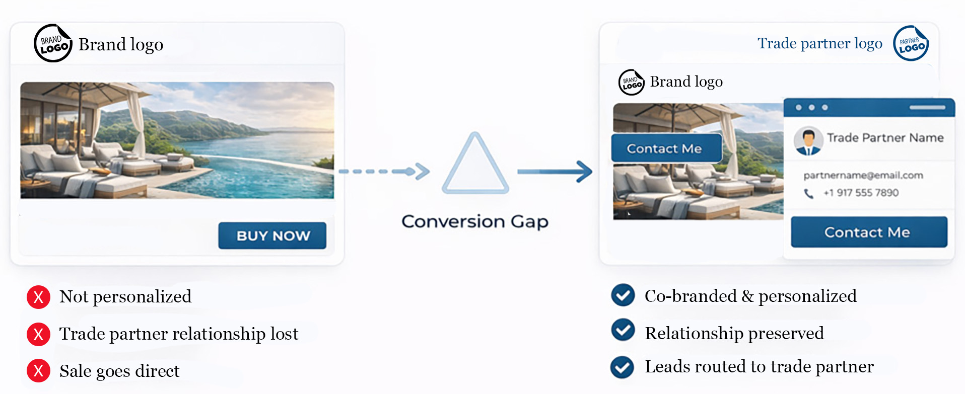 Approach removes that friction by transforming your existing website into a co-branded, partner-specific experience that captures and converts demand — without breaking the relationship.